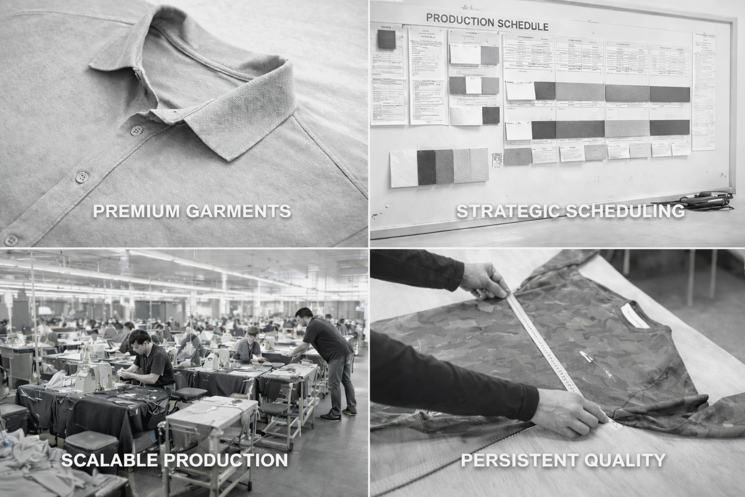 From cut & sew coordination to production scheduling, compliance oversight, and quality assurance follow-through — every stage is approached with operational discipline and clear accountability.